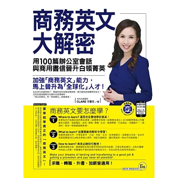 商務英文大解密:用100篇辦公室會話與商用書信晉陞白領菁英(附1MP3+書信word檔)購買網址:http://www.books.com.tw/exep/assp.php/87926/products/0010747532?utm_source=87926&utm_medium=ap-books&utm_content=recommend&utm_campaign=ap-201706